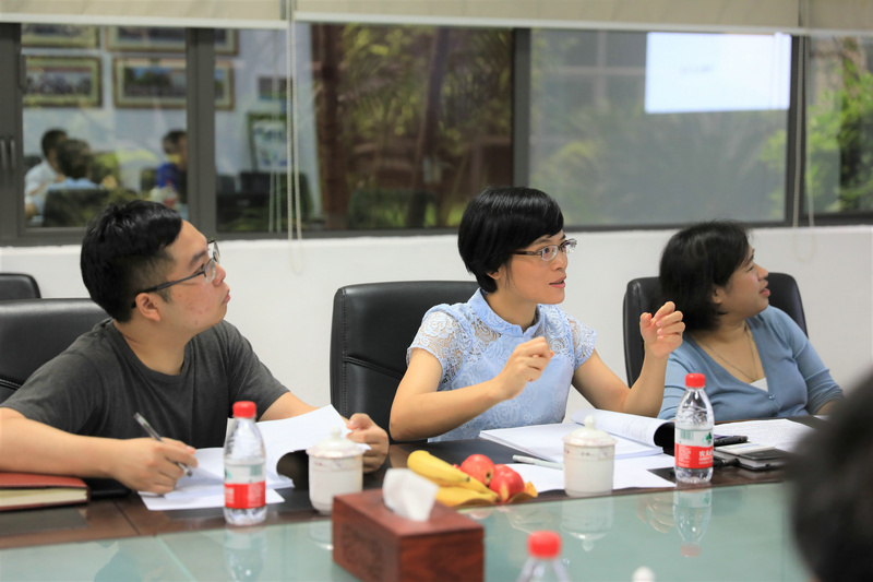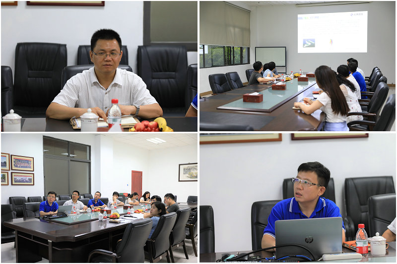 ▲松山湖科創(chuàng)局領(lǐng)導(dǎo)討論項(xiàng)目市場(chǎng)應(yīng)用情況