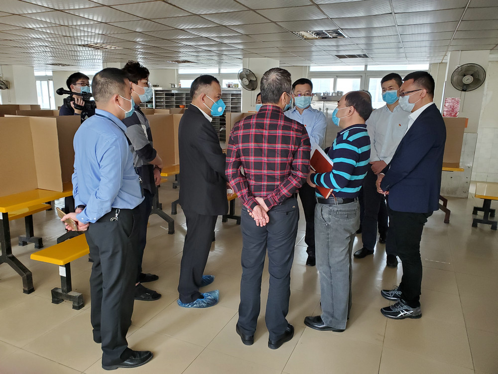 考察團進行實地調研,參觀了集銀科技辦公區、生產車間、食堂,并肯定了公司在疫情防控、復工復產等方面取得的成效。深圳寶安區區委常委蔡英權表示,集銀科技防控工作非常到位,后續在疫情未結束之前仍要穩打穩扎,不可松懈,加強管控,激勵大家保持良好的心態、激昂的斗志,打好疫情防控阻擊戰,做好生產經營,并仔細詢問了集銀科技在復工復產中遇到的困難和需要,重點就疫情對公司國際市場的影響進行了深度調研和了解。