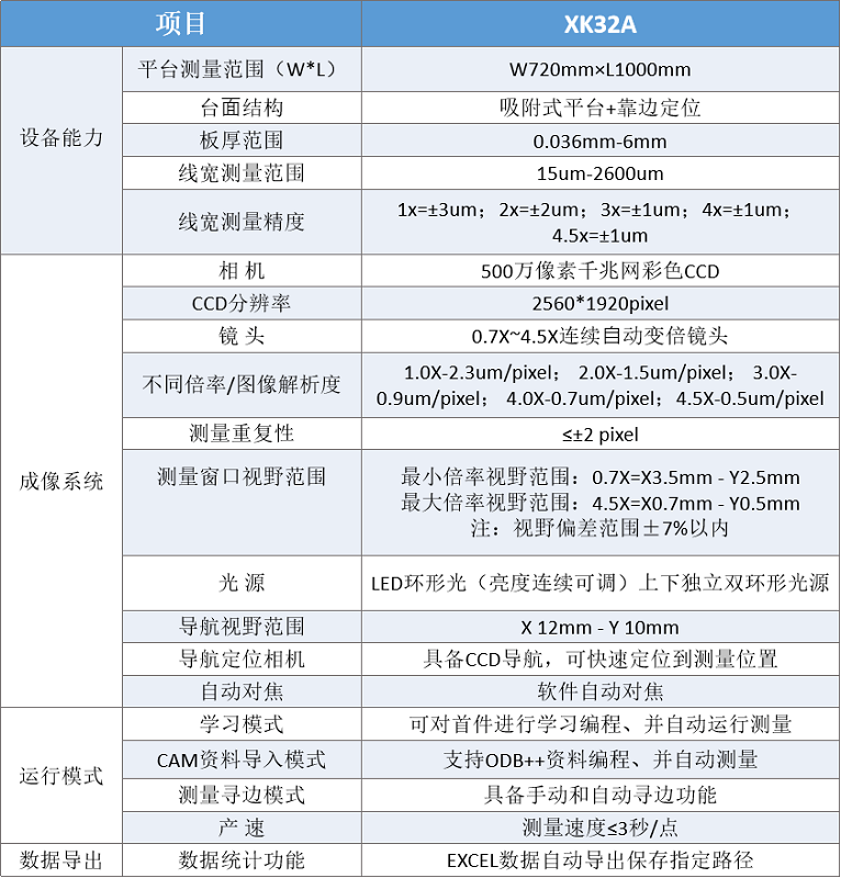 正業(yè)科技全新自動(dòng)線寬測量儀(XK32A)主要應(yīng)用于5G高端線路板及普通線路板的內(nèi)、外層半成品經(jīng)顯影蝕刻后(上綠油前)線路的上幅及下幅寬度、線距,圓孔(相機(jī)視野范圍內(nèi))檢查和分析。