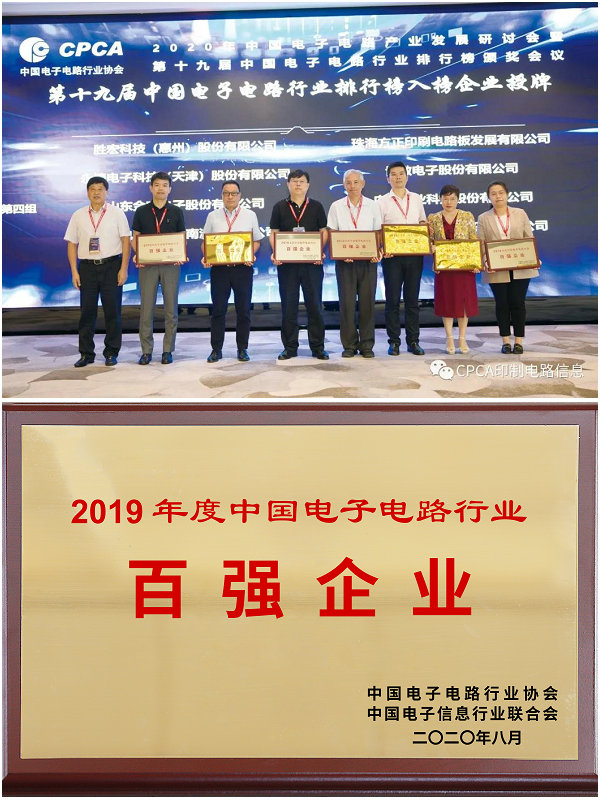 為表彰電子電路行業百強企業,助力企業抓住發展機遇,由中國電子信息行業聯合會和中國電子電路行業協會聯合主辦的2020年中國電子電路產業發展研討會暨第十九屆中國電子電路行業排行排行榜頒獎會議”于824日盛大召開。百強排行榜企業授牌儀式上,正業科技常務副總裁徐國鳳女士代表公司領取了“2019年度中國電子電路行業百強企業”獎牌。