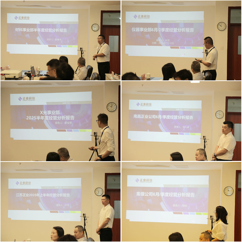正業科技各經營單位負責人依次上臺對2025年上半年工作完成情況及下半年工作規劃做出詳細的匯報,全面復盤上半年工作成效,系統部署下半年攻堅任務。